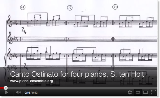 - Considered one of the best and most successful works of "Minimal Music", the Canto Ostinato by Dutch composer Simeon ten Holt acquired a cult status.